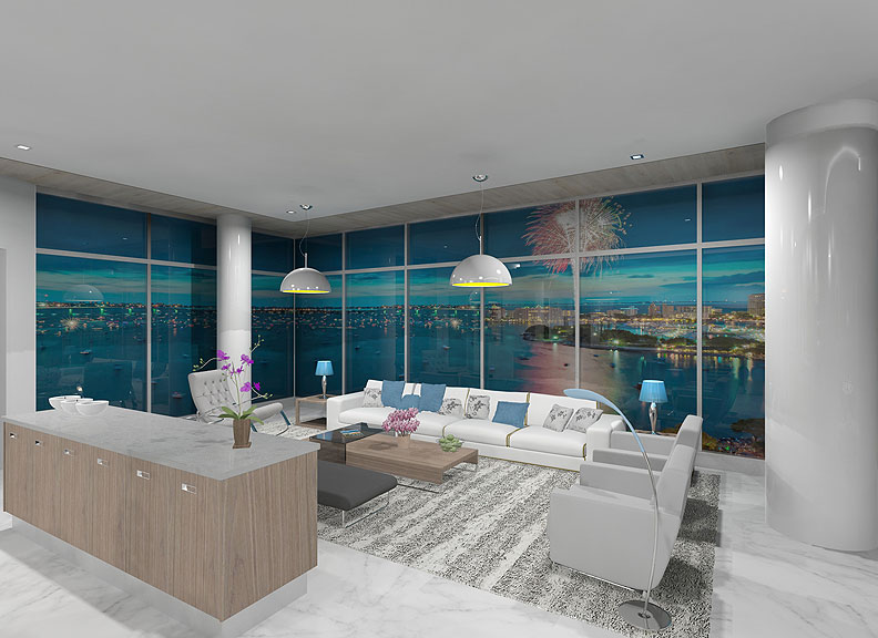 The Jewel in downtown Sarasota is located at the corner of Gulf Stream Avenue and Main Street with unobstructed views of Sarasota Bay. The Jewel offers 18 luxury residences ranging from two-story lofts to a full floor penthouse and all feature floor to ceiling glass. Every residence has a spacious balcony, 11’4″ high ceilings, luxury appliances, distinctive finishes, designer lighting and interior on-site parking.