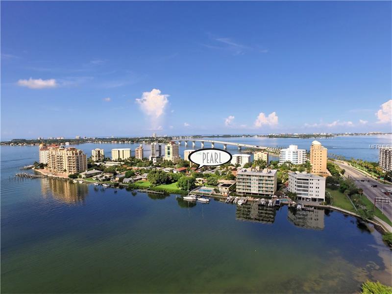 The five-story Pearl is quite a gem; it is an elegant, rare and distinctive residential development located just to the west of downtown Sarasota, nestled in the heart of the luxurious and charming 22-acre peninsula known as Golden Gate Point. The Pearl offers eight individual condominium residences that purposefully reflect the unique building design by creating spacious and airy living areas with floor-to-ceiling windows and sliding doors that open to expansive terraces. Amenities include resort-style pool and spa, cabana, barbecue area, individual garage space, private elevator foyer and rooftop patio with stunning views. Premium Euro-style custom cabinetry, quartz countertops, natural hardwood flooring and luxurious spa-like master bathrooms highlight the interior features. The roof patio offers breathtaking views of Sarasota Bay and the downtown Sarasota skyline. Enjoy all that this incredible location has to offer close to the Ringling Bridge, Lido Beach, Ritz-Carlton Beach Club, St. Armands, Van Wezel Performing Arts Hall, Marina Jack’s and all of the culture and amenities of beloved downtown Sarasota.